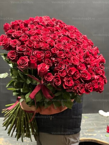 Розы в оттенках бордового, винного, рубинового цвета полны символизма. Этот траурный букет, олицетворяющие боль невосполнимой утраты и вечную память, способны выразить скорбь от потери, а также продемонстрировать любовь и уважение к усопшему. Высота стеблей: 70 см.