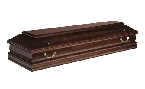 Погребальное деревянное изделие отечественного производства выполнен в традиционном европейском стиле. Лаконичные формы гроба на похороны основаны на строгих линиях прямоугольного основания. Многоуровневые резные элементы опоясывают боковые стенки. Крышка мягко сужается кверху и оканчивается плоской планкой. Подобрана стильная фурнитура золотистого цвета: четыре боковые ручки и крепления крышки. Элегантный дизайн также подчеркивает покрытие тёмно-коричневым лаком, сквозь которое видна структура натурального дерева. Для изготовления используется массив сосны, который предварительно проходит специальную высушку. Светлая ткань покрывает мягкую обивку внутреннего пространства.