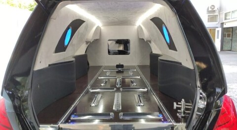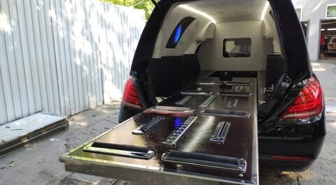 Элитный автомобиль-катафлак оборудован специальными устройствами для закрепления гроба, а также его погрузки и разгрузки.