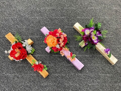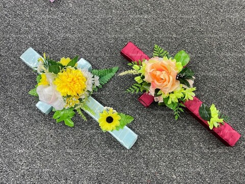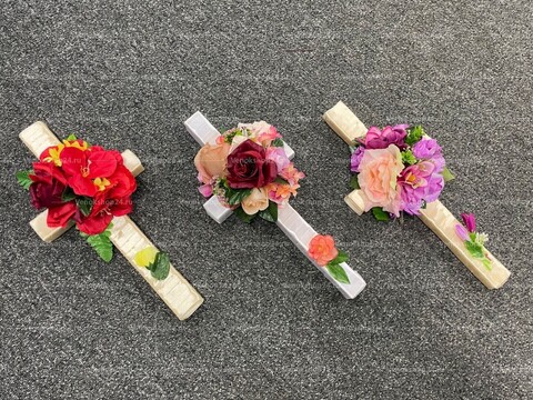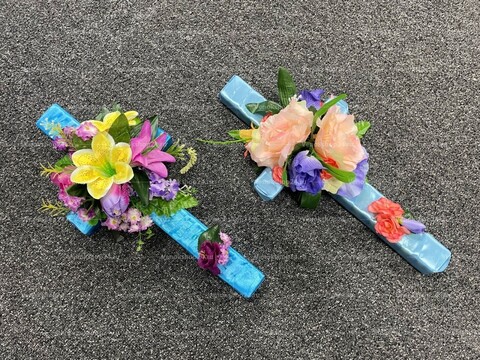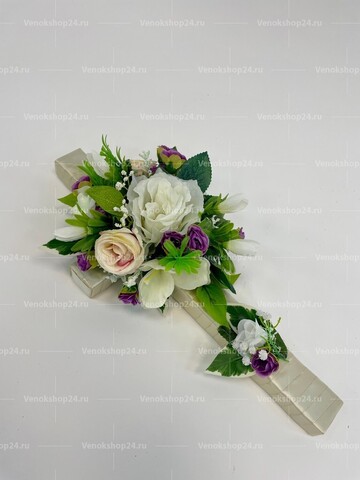 Траурная композиция в виде креста дополнена изящной композицией из искусственных цветов, созданной в светлых тонах. Такие цветовые решения передают чувство надежды и привносят теплоту и утешение в трудный период утраты. Длина данной композиции составляет 40 см, что позволяет легко поместить ее на гроб и создать ощущение гармонии и упорядоченности. Композиция является выражением уважения и почтения к памяти ушедшего, и придает полное ощущение ухода с достоинством и чувством торжественности. Можно выполнить в разных тонах.