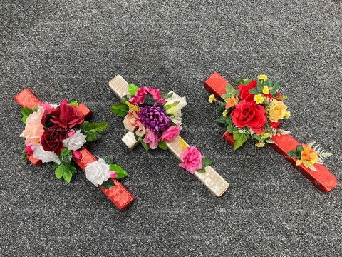Композиция на гроб в форме креста, идеально подходит для выразительного прощания с усопшим. Главной особенностью этой композиции является ее светлая и нежная цветовая гамма искусственных цветов, которая создает атмосферу умиротворения и спокойствия. Благодаря разнообразию цветов и их сочетанию, этот крест выражает глубокие чувства и уважение к памяти усопшего. Композиция на гроб в виде креста - это не только украшение для прощания, но и символ веры и надежды. Крест является важным символом в религиозных обрядах и этот товар с легкостью передает все эти значения и чувства. Длина 40 см. Можно выполнить в разных тонах.