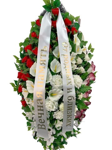 Белоснежная ритуальная атласная лента удачно дополнит композиции похоронных венков, корзин и цветочных букетов. Золотая надпись на белом фоне выглядит по траурному торжественно. Текст печатается термотрансферным методом, что обеспечивает устойчивость к различным погодным условиям.