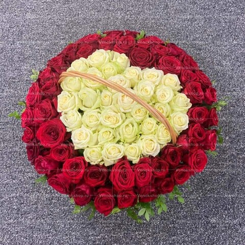 Состав: Роза красная, роза белая 100 шт,