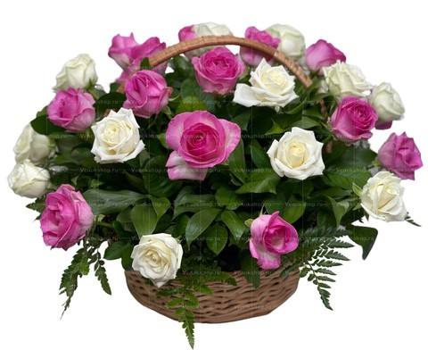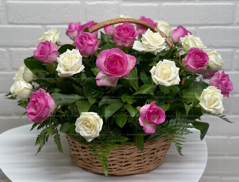 Состав: Роза белая, роза розовая 30 шт, папоротник