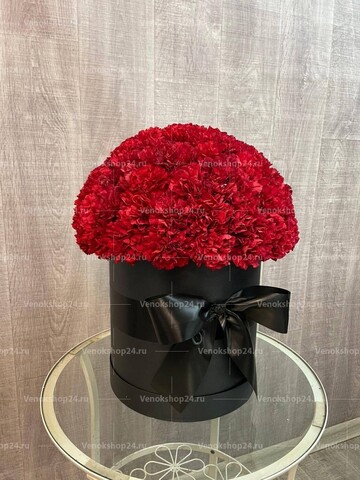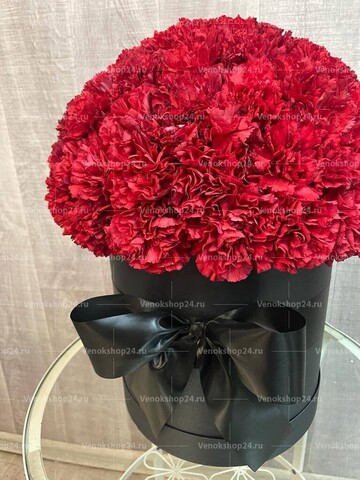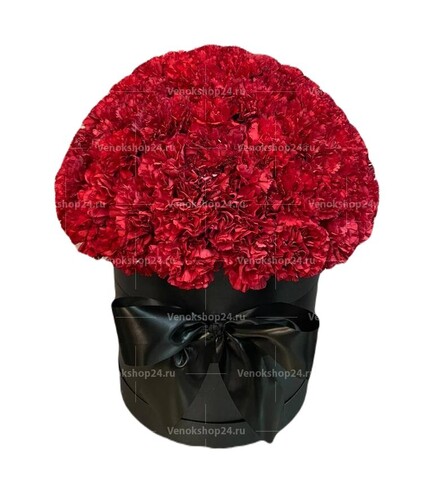 Траурная черная коробка с красными гвоздиками - это символическое выражение скорби и уважения к ушедшему. Красные гвоздики, тщательно аранжированных внутри коробки, создают впечатляющий и эмоциональный образ.
