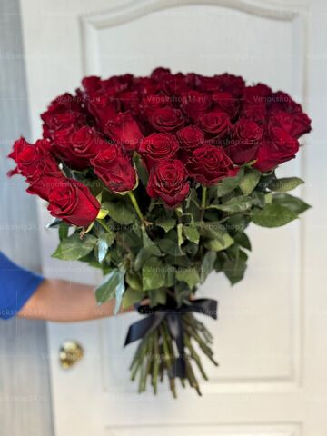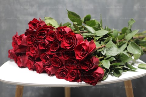 Траурные цветы в виде букета из 50 винно-красных эквадорских роз. Эта траурная флористическая композиция станет достойным жестом прощания и символом любви к покойному.