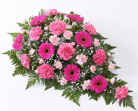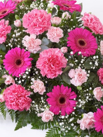 В этом ритуальном букете, собранном на фоне зеленого папоротника, вы найдете изящное сочетание нежно-розовых гвоздик, ярких гербер и вкраплений белых гипсофил. Розовые бутоны гвоздик, символизирующие память и уважение, добавляют в букет нотки тепла и глубины. Герберы, с их яркими лепестками, приносят в букет свежесть и надежду. Белые гипсофилы, нежные и воздушные, дополняют композицию своей нежностью. Зеленый папоротник, служащий фоном для всего букета, символизирует жизненную силу и вечность. Этот ритуальный букет выражает глубокую скорбь и уважение к ушедшему, принося утешение и поддержку в трудные моменты.