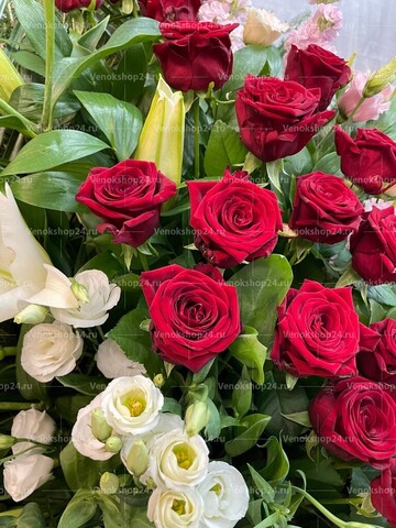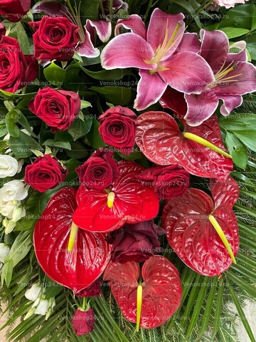 | Состав | Розы, Лилии, Антуриум, Эустомы |