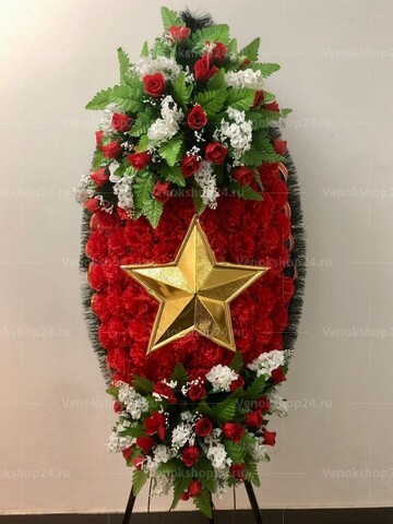 Серия венков на возложение Подвиг - станет достойным атрибутом поминальных мероприятий по случаю Дня Победы, общероссийского или общеведомственного траура. Композиция украшенная георгиевской лентой, триколором или звездой подойдет для почтения памяти ушедших или пропавших без вести в бою, служащих различных государственных ведомств, государственных деятелей. Традиционно венки с государственной и военной символикой возлагаются на могилу, к мемориалу или памятнику в знак почтения памяти защитника Отечества.