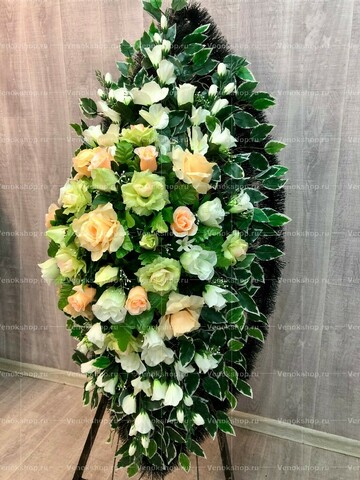 Купить венок из искусственных цветов можно через сайт или путем звонка оператору.