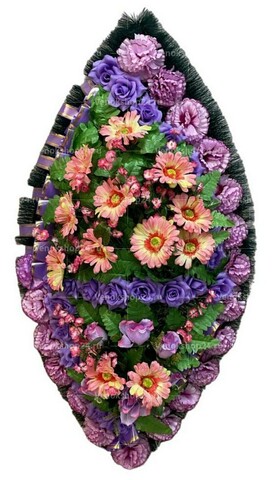 Ритуальный венок из искусственных цветов в фиолетово-розовых тонах с элементами роз и гвоздик. Великолепная композиция, украшенная крупными кремово-розовыми герберами в центре, создаст трогательную и нежную атмосферу прощания. Этот венок станет достойным символом памяти и уважения к ушедшему человеку. Его яркие, но при этом благородные цвета добавят нотку утонченности и изящества к последнему прощанию. Каждый цветок в венке выполнен с любовью и тщательностью, чтобы передать естественную красоту и живость цветов.