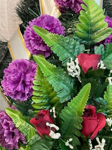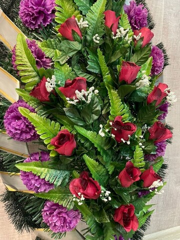 Классический ритуальный венок - бюджетный вариант погребального аксессуара позволит выразить родным своё почтение усопшему, и в то же время, не обременит их излишними тратами. Венок станет достойным атрибутом для прощальной церемонии в кругу семьи и близких друзей. Композиция подходит для почтения светлой памяти как мужчины, так и женщины любых возрастов. Траурный венок из искусственных цветов сохранит свой первоначальный вид на протяжении длительного периода времени.
